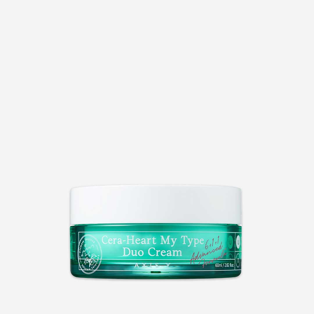AXIS-Y Cera-Heart My Type Duo Cream is a two-in-one moisturizer that targets both oily and dry skin. This cream has a unique formula that adjusts to your skin type, providing the hydration and nourishment that your skin needs.The cream comes in a dual-chambered container, with one side containing a lightweight gel moisturizer for oily skin, and the other side containing a rich cream moisturizer for dry skin. Both moisturizers are formulated with a blend of nourishing ingredients to help soothe and hydrate the skin.The gel moisturizer is formulated with 68.4% birch juice and ceramides to provide lightweight hydration and strengthen the skin barrier. The cream moisturizer is formulated with 5% panthenol and ceramides to deeply nourish and repair dry skin.Together, these two moisturizers work to provide the perfect balance of hydration for your skin type. This cream is also free from harsh chemicals like parabens, sulfates, and mineral oil, making it suitable for sensitive skin.Overall, the AXIS-Y Cera-Heart My Type Duo Cream is a versatile and customizable moisturizer that can be used by all skin types to achieve healthy and hydrated skin.